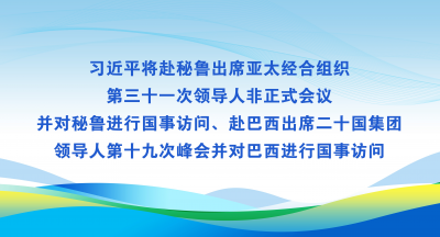习近平将赴秘鲁出席亚太经合组织第三十一次领导人非正式会议并对秘鲁进行国事访问、赴巴西出席二十国集团领导人第十九次峰会并对巴西进行国事访问